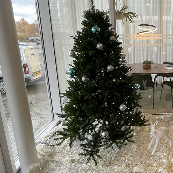 Kerstboom 2,1mtr incl. versiering en verlichting