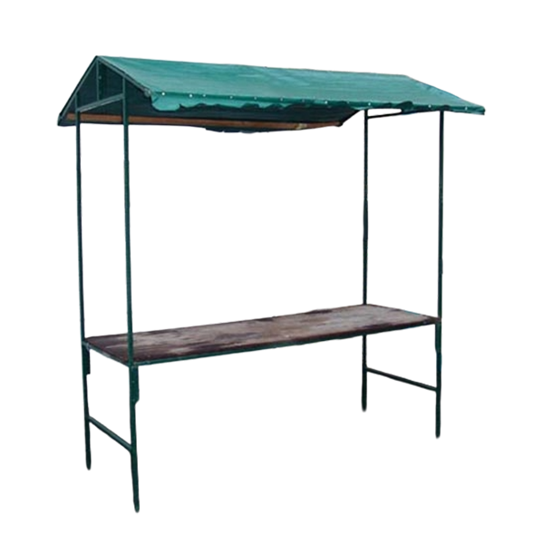 De marktkramen zijn demontabel en leverbaar met een blauw/wit, groen.